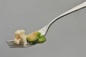 Jeden widelec do jadalni leżącego na szarej powierzchni