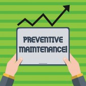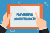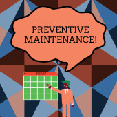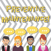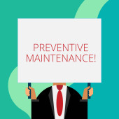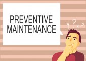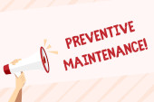 Koncepcyjny ręczne pisanie wykazujące konserwacja zapobiegawcza. Business Photo gablota Unikaj podziału zrobić podczas pracy maszyny nadal działa wstecz widok młoda kobieta ogląda puste duży prostokąt.
