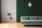 Zdjęcie "Poduszka z żółtym węzłem na szarej kanapie w szarym i zielonym salonie" może być wykorzystywane do celów osobistych i komercyjnych zgodnie z warunkami zakupionej licencji Royalty-free. Obraz jest dostępny do pobrania w jakości wysokiej rozdzielczości do 5760x3840.