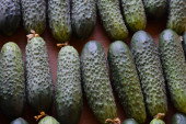 Świeże, zielone ogórki. Posiłki wegetariańskie. Ogórek zawiera witaminy B, A.