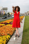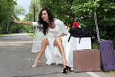dziewczyna autostopem z rocznika walizki
