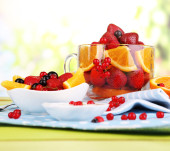sałatka owocowa przydatne w Puchar drewniany stół szczegół szkło