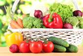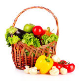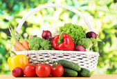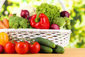 świeże warzywa w biały wiklinowy koszyk na jasnym tle