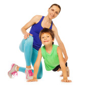 portret matki i dziecka w tenisa ubrania z medalem