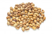 Pistacje izolowane na białym tle. Pistacje stos zbliżenie. Kolekcja orzechów
