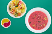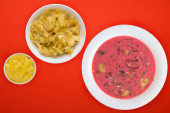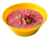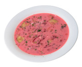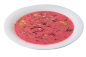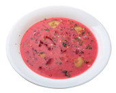 Zupa z Burak wyizolowana na białym tle. zimny zupa widok z góry.