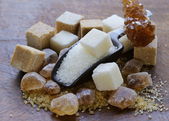 różne rodzaje cukru, brązowy, biały i rafinacji cukru