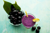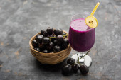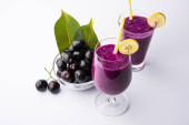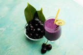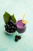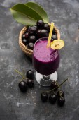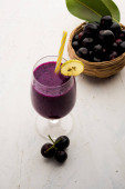 Sok z owoców jamun w szklance zwany także jako śliwka Java, śliwka jambolan, jambhul, Syzygium cumini