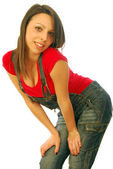 piękne brunetki w denim spódnicę