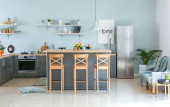Zdjęcie "Wnętrze nowoczesnej komfortowej kuchni" może być wykorzystywane do celów osobistych i komercyjnych zgodnie z warunkami zakupionej licencji Royalty-free. Obraz jest dostępny do pobrania w jakości wysokiej rozdzielczości do 5760x3840.