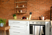 Zdjęcie "Wnętrze nowoczesnej komfortowej kuchni" może być wykorzystywane do celów osobistych i komercyjnych zgodnie z warunkami zakupionej licencji Royalty-free. Obraz jest dostępny do pobrania w jakości wysokiej rozdzielczości do 5760x3840.