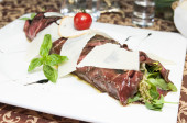 Zdjęcie "Carpaccio z w postaci rolki na białym talerzu" może być wykorzystywane do celów osobistych i komercyjnych zgodnie z warunkami zakupionej licencji Royalty-free. Obraz jest dostępny do pobrania w jakości wysokiej rozdzielczości do 5760x3840.