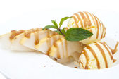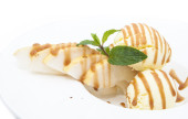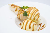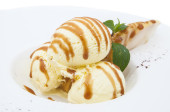 kulki lodów ozdobione mięta na białym tle w restauracji