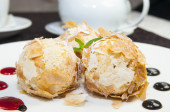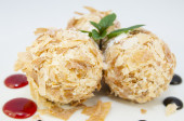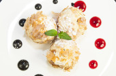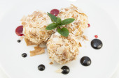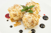 kulki lodów ozdobione mięta na białym tle w restauracji