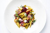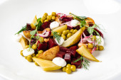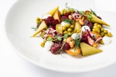 Zdjęcie "Sałatka warzywna z burzyny na białej płycie" może być wykorzystywane do celów osobistych i komercyjnych zgodnie z warunkami zakupionej licencji Royalty-free. Obraz jest dostępny do pobrania w jakości wysokiej rozdzielczości do 5760x3840.