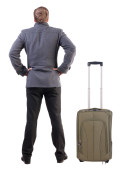 Widok konferencyjnym człowiek z walizką podróżujących z tyłu