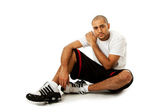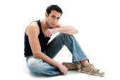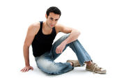 przystojny facet siedzi na podłodze