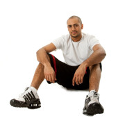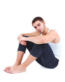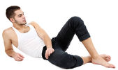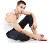 przystojny facet siedzi na podłodze