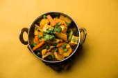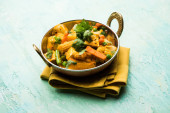 Zdjęcie "Mix warzyw curry-indyjski przepis danie główne zawiera marchew, kalafior, zielony groszek i fasola, kukurydza, Capsicum i Paneer/twarożek z tradycyjnym Masala i curry, selektywne skupienie" może być wykorzystywane do celów osobistych i komercyjnych zgodnie z warunkami zakupionej licencji Royalty-free. Obraz jest dostępny do pobrania w jakości wysokiej rozdzielczości do 5760x3840.