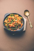 Zdjęcie "Mix warzyw curry-indyjski przepis danie główne zawiera marchew, kalafior, zielony groszek i fasola, kukurydza, Capsicum i Paneer/twarożek z tradycyjnym Masala i curry, selektywne skupienie" może być wykorzystywane do celów osobistych i komercyjnych zgodnie z warunkami zakupionej licencji Royalty-free. Obraz jest dostępny do pobrania w jakości wysokiej rozdzielczości do 5760x3840.