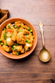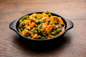 Zdjęcie "Mix warzyw curry-indyjski przepis danie główne zawiera marchew, kalafior, zielony groszek i fasola, kukurydza, Capsicum i Paneer/twarożek z tradycyjnym Masala i curry, selektywne skupienie" może być wykorzystywane do celów osobistych i komercyjnych zgodnie z warunkami zakupionej licencji Royalty-free. Obraz jest dostępny do pobrania w jakości wysokiej rozdzielczości do 5760x3840.