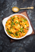 Zdjęcie "Mix warzyw curry-indyjski przepis danie główne zawiera marchew, kalafior, zielony groszek i fasola, kukurydza, Capsicum i Paneer/twarożek z tradycyjnym Masala i curry, selektywne skupienie" może być wykorzystywane do celów osobistych i komercyjnych zgodnie z warunkami zakupionej licencji Royalty-free. Obraz jest dostępny do pobrania w jakości wysokiej rozdzielczości do 5760x3840.