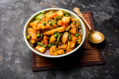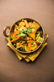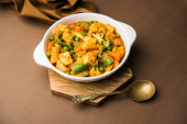 Zdjęcie "Mix warzyw curry-indyjski przepis danie główne zawiera marchew, kalafior, zielony groszek i fasola, kukurydza, Capsicum i Paneer/twarożek z tradycyjnym Masala i curry, selektywne skupienie" może być wykorzystywane do celów osobistych i komercyjnych zgodnie z warunkami zakupionej licencji Royalty-free. Obraz jest dostępny do pobrania w jakości wysokiej rozdzielczości do 5760x3840.