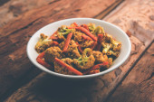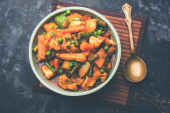 Zdjęcie "Mix warzyw curry-indyjski przepis danie główne zawiera marchew, kalafior, zielony groszek i fasola, kukurydza, Capsicum i Paneer/twarożek z tradycyjnym Masala i curry, selektywne skupienie" może być wykorzystywane do celów osobistych i komercyjnych zgodnie z warunkami zakupionej licencji Royalty-free. Obraz jest dostępny do pobrania w jakości wysokiej rozdzielczości do 5760x3840.