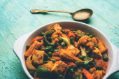Zdjęcie "Mix warzyw curry-indyjski przepis danie główne zawiera marchew, kalafior, zielony groszek i fasola, kukurydza, Capsicum i Paneer/twarożek z tradycyjnym Masala i curry, selektywne skupienie" może być wykorzystywane do celów osobistych i komercyjnych zgodnie z warunkami zakupionej licencji Royalty-free. Obraz jest dostępny do pobrania w jakości wysokiej rozdzielczości do 5760x3840.