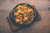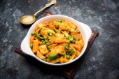 Zdjęcie "Mix warzyw curry-indyjski przepis danie główne zawiera marchew, kalafior, zielony groszek i fasola, kukurydza, Capsicum i Paneer/twarożek z tradycyjnym Masala i curry, selektywne skupienie" może być wykorzystywane do celów osobistych i komercyjnych zgodnie z warunkami zakupionej licencji Royalty-free. Obraz jest dostępny do pobrania w jakości wysokiej rozdzielczości do 5760x3840.