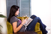 słodkie dziewczyny picie podczas czytania książki