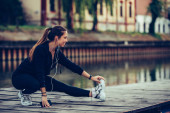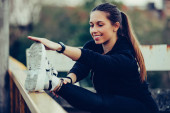 Zdjęcie "Młoda kobieta w czarnym stroju sportowego odpoczynku podczas słuchania mu" może być wykorzystywane do celów osobistych i komercyjnych zgodnie z warunkami zakupionej licencji Royalty-free. Obraz jest dostępny do pobrania w jakości wysokiej rozdzielczości do 5760x3840.