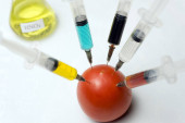 Zdjęcie "Kilka strzykawek wpięte pomidora. Produkty GMO" może być wykorzystywane do celów osobistych i komercyjnych zgodnie z warunkami zakupionej licencji Royalty-free. Obraz jest dostępny do pobrania w jakości wysokiej rozdzielczości do 5760x3840.