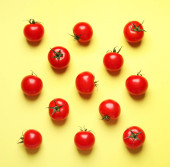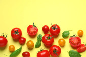 Zdjęcie "Kompozycja z dojrzałych pomidorów wiśniowych i liści bazylii na białym tle, widok z góry" może być wykorzystywane do celów osobistych i komercyjnych zgodnie z warunkami zakupionej licencji Royalty-free. Obraz jest dostępny do pobrania w jakości wysokiej rozdzielczości do 5760x3840.