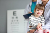 Dziewczynka u lekarza na kontrolę. Lekarz kobieta auscultate serca dziecka.
