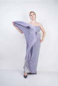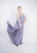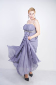 Zdjęcie "Elegancka Gruba Kobieta w szarej długiej sukni. ładne plus rozmiar kobiety w strój wieczorowy stojący na białym tle Studio. krótkie włosy Pulchne dziewczyny w szarej odzieży pozowanie sam." może być wykorzystywane do celów osobistych i komercyjnych zgodnie z warunkami zakupionej licencji Royalty-free. Obraz jest dostępny do pobrania w jakości wysokiej rozdzielczości do 5760x3840.