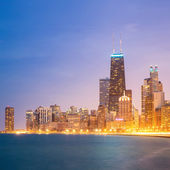 Chicago Śródmieście Cityscape Skylines i wieżowce biurowiec z Lake Michigan zachód słońca w Chicago City Illinois USA.