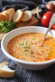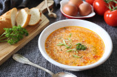 Zupa pomidorowa Stracciatella: pietruszka, jajka i parmezan