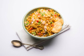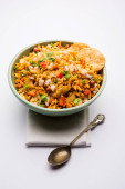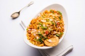 Zdjęcie "Bhelpuri Chaat/chat to strona drogowa smaczne jedzenie z Indii, serwowane w misce lub talerzu. Selektywna koncentracja" może być wykorzystywane do celów osobistych i komercyjnych zgodnie z warunkami zakupionej licencji Royalty-free. Obraz jest dostępny do pobrania w jakości wysokiej rozdzielczości do 5760x3840.