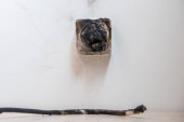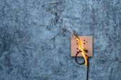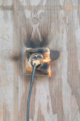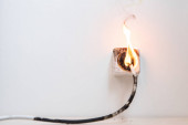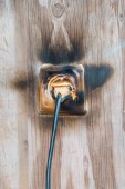 Zwarcie elektryczne. Przewód okablowania w płomieniu ognia