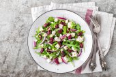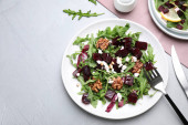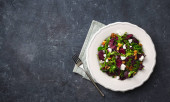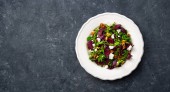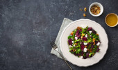 Zdjęcie "Talerz sałatkowy na ciemnym tle widok z góry" może być wykorzystywane do celów osobistych i komercyjnych zgodnie z warunkami zakupionej licencji Royalty-free. Obraz jest dostępny do pobrania w jakości wysokiej rozdzielczości do 5760x3840.
