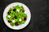 Świeża letnia Sałatka z grillowanymi buraków, serem feta i orzechami na ciemnym tle z góry