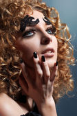 piękno portret z kreatywnych makijaż i czarny naszyjnik