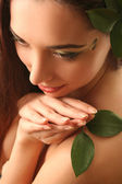Zdjęcie "twarz i zielony liść" może być wykorzystywane do celów osobistych i komercyjnych zgodnie z warunkami zakupionej licencji Royalty-free. Obraz jest dostępny do pobrania w jakości wysokiej rozdzielczości do 5760x3840.