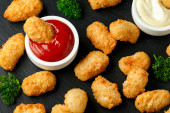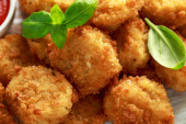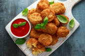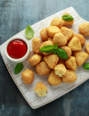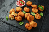 Smażone Mac, makarony i sery Bites w Breadcrumbs z sosem ketchup