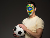 kobiet Brazylia fan piłki nożnej pozowanie na białym tle