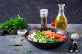 użyteczne wzbogacone niskokaloryczne świeże jedzenie. pyszna Sałatka z warzywami i zielonymi liśćmi
