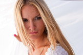 Dziewczyna na białym tle na białym (hi klawisz strzału)