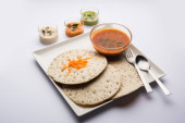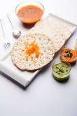 Zestaw Dosa/Oothappam stylu Dosa jest popularnym południowoindyjskiej żywności serwowane z Sambar i Chutney, selektywne skupienie