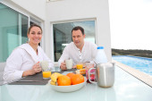 Zdjęcie "para śniadanie w ośrodku" może być wykorzystywane do celów osobistych i komercyjnych zgodnie z warunkami zakupionej licencji Royalty-free. Obraz jest dostępny do pobrania w jakości wysokiej rozdzielczości do 5760x3840.